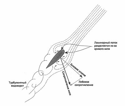 образует большие турбулентные водовороты. Когда турбулентности начинают попадать на киль, его эффективность снижается, и, соответственно, яхта начинает