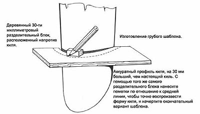смещаться во время работы. Аккуратно отметьте передний и задний края, а затем пройдитесь вокруг киля, используя 30-ти миллиметровый разделительный блок,